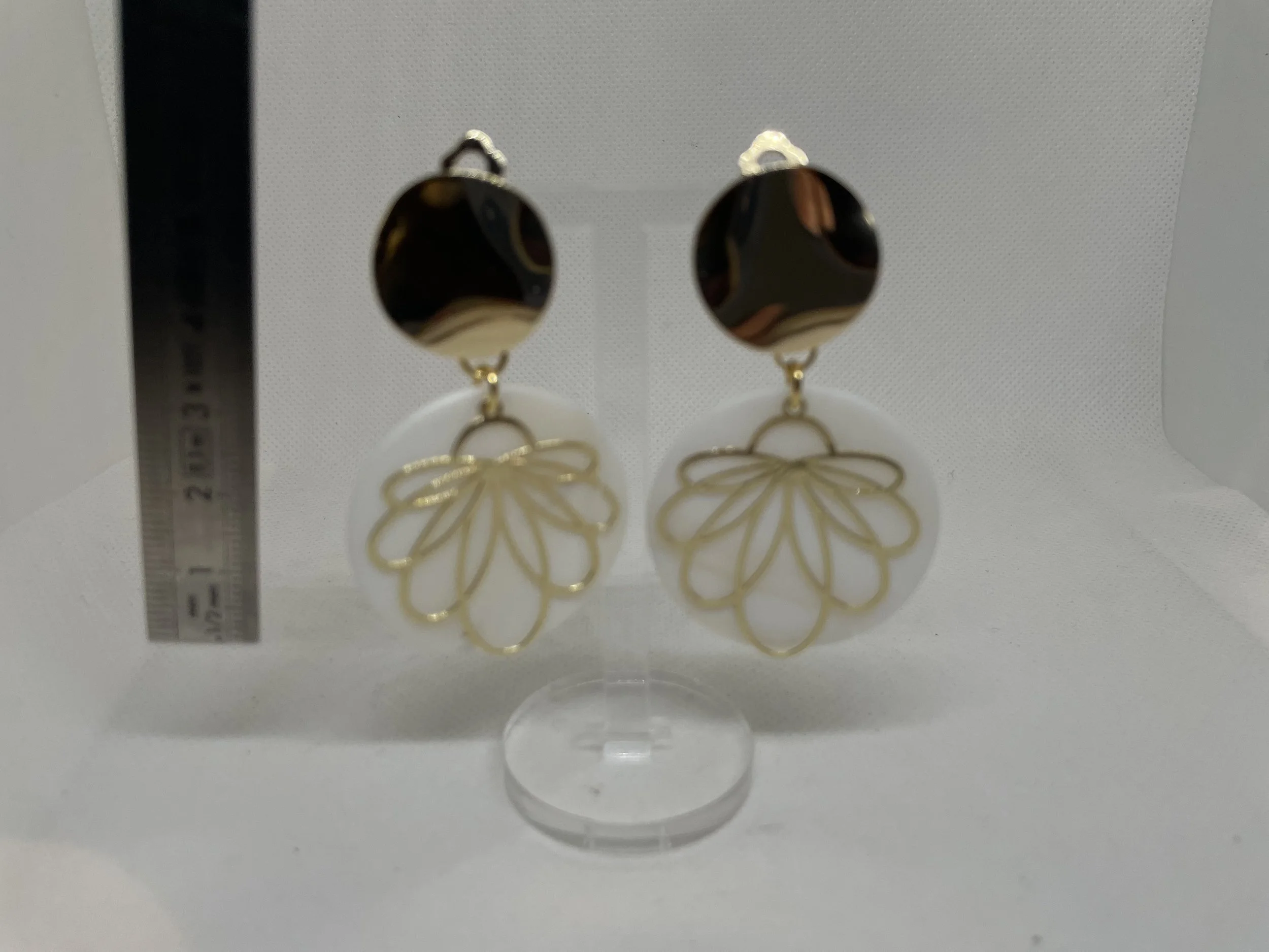 Boucles d’oreilles à clips avec jade teinté rose sur le clip et pendant en forme de palmette.